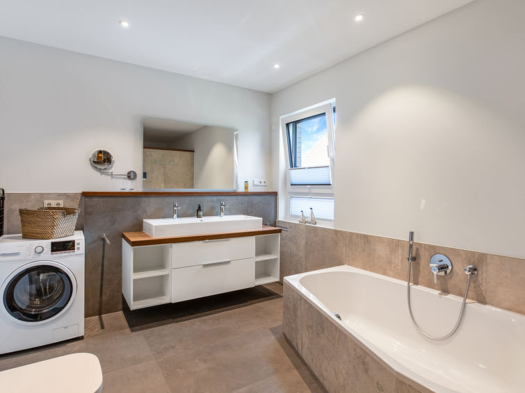 Huis 8-kamers 192 m2 op 2 verdiepingen. Ruim en licht, comfortabel en modern ingericht: groot woon-/eetkamer met Sat-TV (Flatscreen TV). Uitgang naar de tuin. 2 kamers, elke kamer heeft 1 2-pers bed (180 cm, lengte 200 cm), Sat-TV (Flatscreen TV). 1 kamer met 1 x 2 stapelbedden (90 cm, lengte 200 cm). Open keuken (oven, afwasmachine, 4 keramische glas kookplaten, broodrooster, waterkoker, magnetron, elektrische koffiemachine, kookeiland). Aparte WC, bad/douche/WC, dubbele wastafels, Sauna. Gas-verwarming. Bovenverdieping: groot woon-/eetkamer met Sat-TV (Flatscreen TV). Uitgang naar het balkon. 2 kamers, elke kamer heeft 1 2-pers bed (180 cm, lengte 200 cm), Sat-TV (Flatscreen TV). 1 kamer met 1 bed (90 cm, lengte 200 cm). Open keuken (oven, afwasmachine, 4 keramische glas kookplaten, broodrooster, waterkoker, magnetron, elektrische koffiemachine, kookeiland). Aparte WC, bad/douche/WC, dubbele wastafels, Sauna. Groot balkon 30 m2, groot terras 30 m2. Terrasmeubelen, balkonmeubilair. Ter beschikking: wasmachine, kinderstoel, kinderbed. Internet (Internet (WiFi), gratis). Niet rokers woning. Boekingen zijn alleen voor vakantiedoeleinden toegestaan.