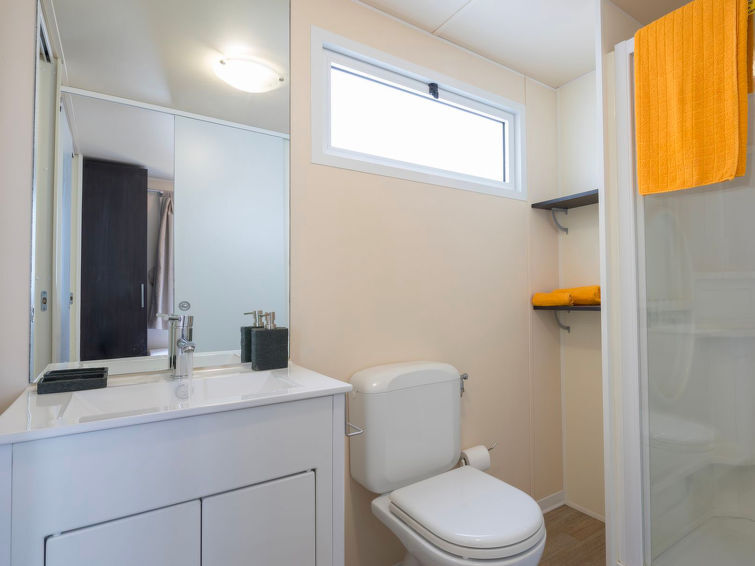 "Baia Relax New Plus", 3-kamers mobilhome 25 m2. Modern ingericht: woon-/eetkamer met eettafel en TV. 1 kamer met 1 2-pers bed (140 cm). 1 kamer met 2 bedden (70 cm), 1 x 1 stapelbedden (65 cm, lengte 170 cm). Kookhoek (4 kookpitten (vlammen), diepvriezer). Douche/WC. Air-conditioning, heteluchtverwarming. Terras overdekt. Terrasmeubelen. Ter beschikking: kinderbed tot 2 jaar (extra). Internet (Internet (WiFi), extra). Parkeerplaats (1 Auto). Niet rokers woning. Bedindeling is flexibel. Er zijn meer slaapmogelijkheden beschikbaar dan het maximaal toegestane aantal personen dat echter niet mag worden overschreden. IT023022B1P4KHX4L9