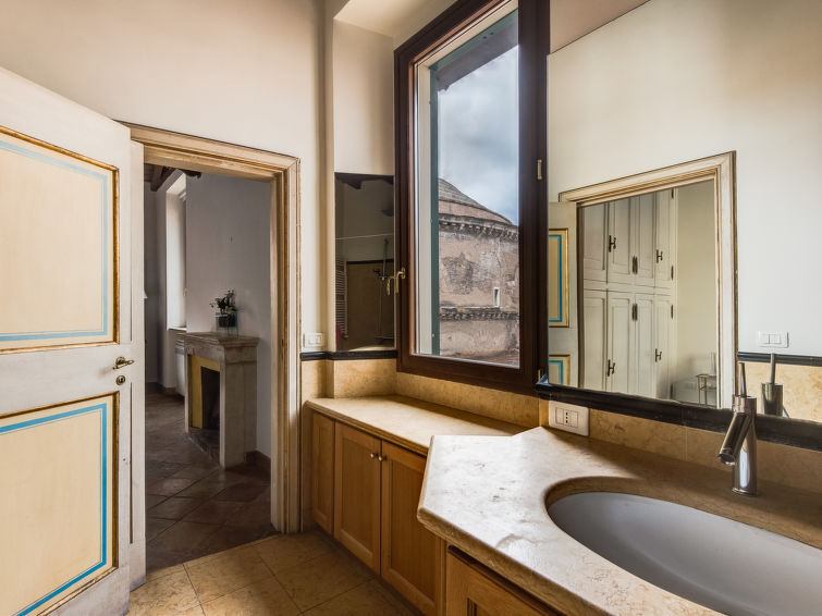 Roma Pantheon: Historisch flatgebouw van 4 verdiepingen. 2.5 km van het centrum van Città del Vaticano, in het district Rione Pigna, drukke ligging, in het centrum van de stad. Bushalte 300 m, treinstation "Roma Termini" 2.5 km, metrostation "Barberini" 1.4 km. Attracties in de buurt: Pantheon 150 m, Piazza Navona 290 m, Piazza Venezia 800 m, Fontana di Trevi 800 m, Foro Romano 1.1 km, Colosseo 1.8 km. Auto wordt niet aangeraden.