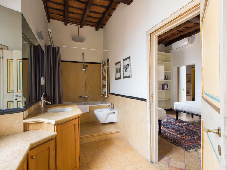 "Pantheon View", appartement 3-kamers 120 m2 op de 4e verdieping. Groot woon-/eetkamer met TV. 1 2-pers. kamer met open haard (alleen decoratie). 1 kamer met 2 bedden. Kleine keuken (afwasmachine, 4 kookpitten (vlammen), waterkoker). Bad/bidet/WC. Gas-verwarming, air-conditioning. Verwarming alleen beschikbaar van 01.11. tot 15.04. Ter beschikking: Internet (WiFi, gratis). Niet rokers woning, geen parkeerplaats. Geen lift. IT058091C2X7V275WQ