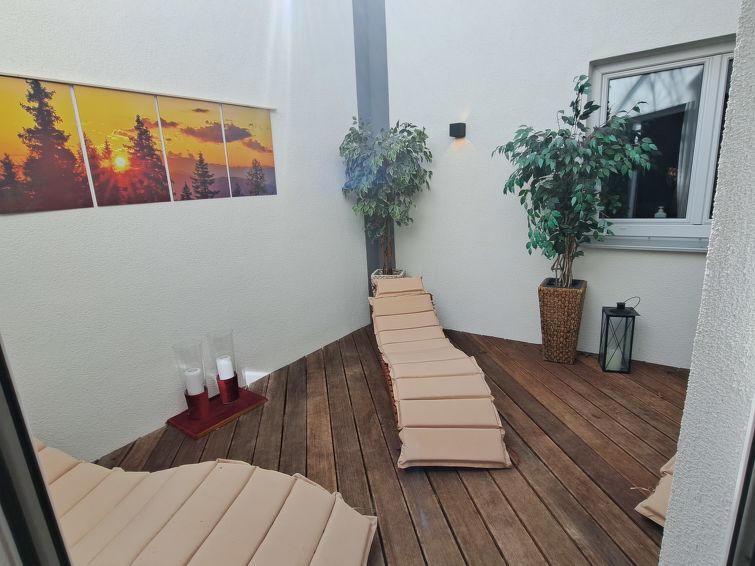 Appartement 3-kamers 55 m2, op de begane grond. Comfortabel en modern ingericht: 2 2-pers. kamers. Woon-/eetkamer met Kabel-TV en radio. Open keuken (oven, afwasmachine, 4 keramische glas kookplaten, broodrooster, waterkoker, magnetron, elektrische koffiemachine, pads voor de koffiemachine (Nespresso), raclette oven, fondue Set (chinese)) met eettafel. Douche, aparte WC. Terras. Terrasmeubelen. Ter beschikking: haardroger. Internet (Internet (WiFi), gratis). Maximaal 1 huisdier/hond toegestaan. 50409-000093-2020