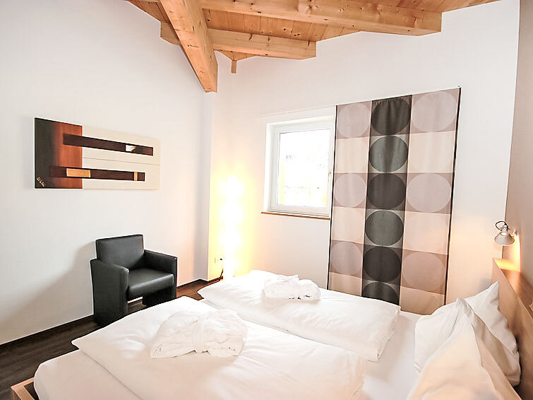 "Top 4", appartement 2-kamers 54 m2 op de 1e verdieping. Ruim, zeer comfortabel en smaakvol ingericht: hal. 1 2-pers. kamer. Woonkamer met Sat-TV (Flatscreen TV). Uitgang naar het balkon, naar het terras. Open keuken (oven, afwasmachine, 4 keramische glas kookplaten, elektrische koffiemachine, pads voor de koffiemachine (Cafissimo) extra) met eettafel. Douche/WC, Sauna. Vloerverwarming. Groot balkon, terras 28 m2, op het zuidoosten gelegen en op het noordoosten gelegen. Balkonmeubilair, ligstoelen. Mooi uitzicht op de bergen. Ter beschikking: haardroger. Internet (WiFi, gratis). Niet rokers woning. Maximaal 1 huisdier/hond toegestaan. Rookmelders.