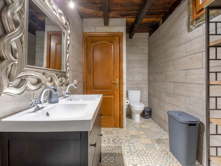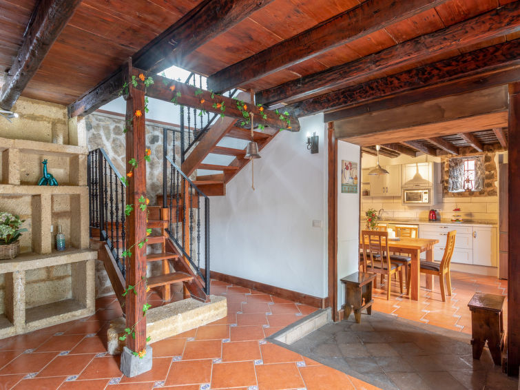 Chalet 4-kamers 130 m2. Het objekt is geschikt voor 8 volwassenen. Ruim, gerenoveerd, smaakvol en gezellig ingericht: woonkamer met 2 opklapbedden, open haard en TV (Flatscreen TV). Groot keuken (oven, afwasmachine, 3 keramische glas kookplaten, magnetron, elektrische koffiemachine) met eettafel. Bad/bidet/WC, douche/WC, dubbele wastafels. Elektrische verwarming. Verwarming niet in alle ruimtes. Bovenverdieping: (trap zonder leuning), 1 kamer met 1 bed (150 cm, lengte 190 cm), TV (Flatscreen TV). Uitgang naar het terras. 1 kamer met 1 2-pers bed (150 cm, lengte 190 cm). 1 kamer met 2 bedden (90 cm, lengte 190 cm), TV en Digitale TV (Flatscreen TV). Uitgang naar de tuin. Comfortabele inrichting in landelijke stijl. Terrasmeubelen, balkonmeubilair, ligstoelen, zitgelegenheid. Uitzicht op het landschap en de oceaan. Ter beschikking: wasmachine, droger, strijkijzer, kinderstoel, kinderbed, haardroger. Internet (WiFi, gratis). Geschikt voor families. Rookvrij huis. Netflix is beschikbaar in de woonkamer. 38-4-0087841 // Reg. Nr.: ESFCTU0000380080003521080000000000000VV-38-4-00878414