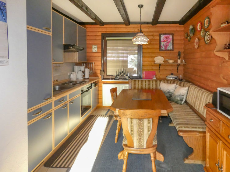 Gezinsvriendelijk en kindvriendelijk vakantiedorp "Am Hohen Bogen", 5 m boven zeeniveau. In de wijk Kummersdorf, buiten de plaats, 3 km van het centrum van Arrach, tegen een helling, gebied met weinig verkeer, 300 m van de bosrand, 100 m van het meer, 9 km van het skigebied. Voor medegebruik: volleybal, kinderspeelplaats (glijbaan, schommel, zandbak). In het complex: tafeltennis (extra). Centrale verwarming. Parkeerplaats bij het huis. Winkel 3 km, levensmiddelenwinkel 3 km, supermarkt 3 km, restaurant 3 km, bakkerij 3 km, bushalte "Großmühle Abzw. Hohenwarth" 650 m, treinstation "Hohenwarth" 1.5 km, grasstrand "Seepark Arrach" 5 km, openluchtzwembad 10 km, thermaalbad 10 km, meer (zwemmen) "Seepark Arrach" 5 km. Golfterrein (9 holes) 6 km, tennis 6 km, manege 800 m, stoeltjeslift 9 km, ski faciliteiten 9 km, skipisten 9 km, skiverhuur 11 km, skischool 9 km, langlaufloipe 11 km. Attracties in de buurt: Bayerwald-Tierpark Lohberg 15 km, Spielbank Bad Kötzting, Fun-Park Neukirchen, Tiergarten Straubing, Pullman-City. Bekende skigebieden kunnen gemakkelijk worden bereikt: Eck 6 km, Am Hohen Bogen 9 km, Arber 29 km. Wandelgebied Arberregion. Auto noodzakelijk. Groepen jongeren uitsluitend op aanvraag. Wandelpaden vanaf het park. Zwemmen, varen, vissen, 500 m. Het vakantiepark is samengesteld uit huizen van 2 verdiepingen, alle met gemeenschappelijk gras- en speelveld. De woningen zijn verschillend en elk naar de smaak van de eigenaar ingericht.