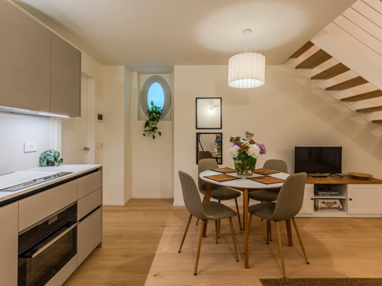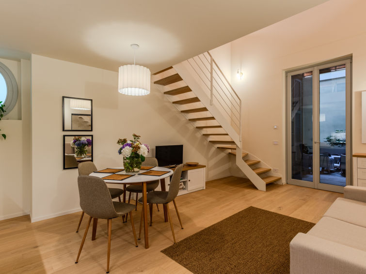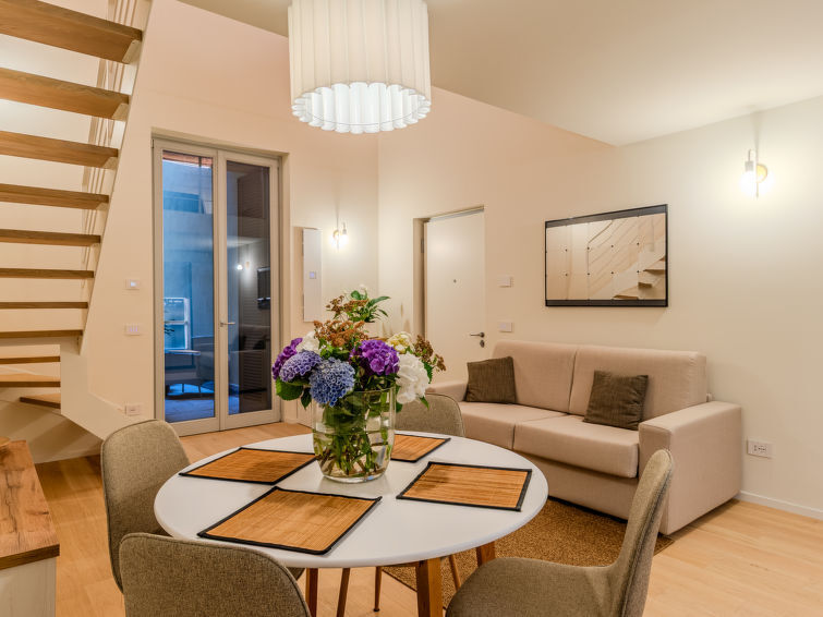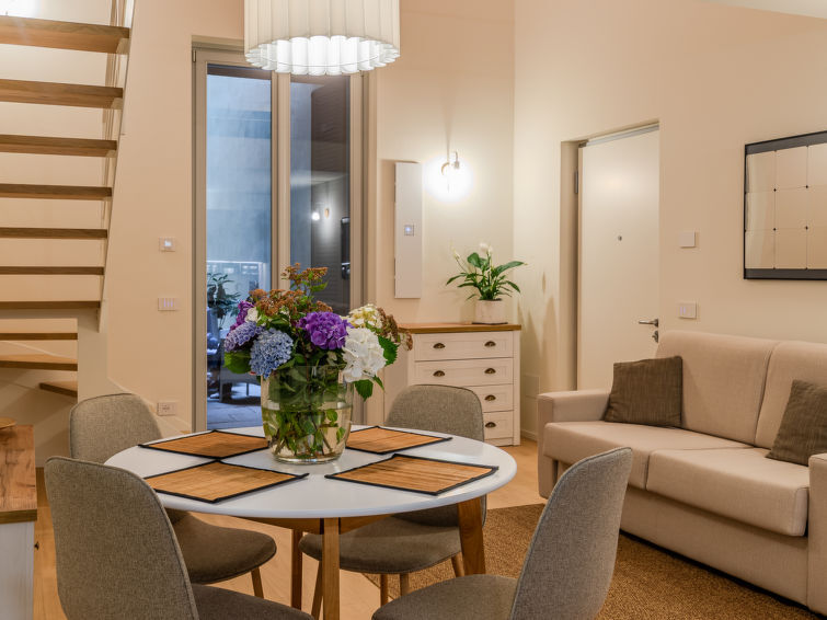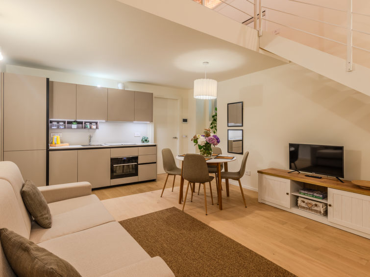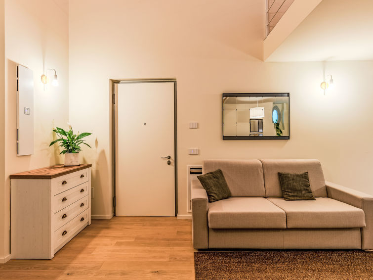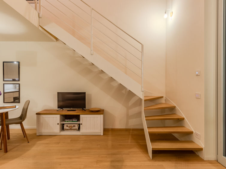 "La Casa di Ale", appartement 1-kamer 50 m2, op de begane grond. Licht, gedeeltelijk afgeschuinde daken, volledig gerenoveerd in 2024, luxueus en gezellig ingericht: woon-/slaapkamer met 1 2-pers divanbed (160 cm), eettafel en TV (Flatscreen TV). Uitgang naar het terras. Open keuken (4 inductiekookplaten, waterkoker, diepvriezer, elektrische koffiemachine, combimagnetron). Uitgang naar het terras. Douche/bidet/WC. Bovenverdieping: open galerij met hoogte van het plafond 150 - 200 cm, Kleedkamer met 1 2-pers bed. Air-conditioning, vloerverwarming. Verwarming alleen beschikbaar van 15.10. tot 30.04. Parketvloeren. Klein terras. Terrasmeubelen. Ter beschikking: haardroger. Internet (WiFi, gratis). Geschikt voor families. Niet rokers woning. Brandblusser. IT013075C2DY5QZVTF