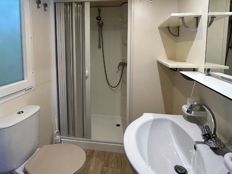 "Prestige", 3-kamers mobilhome. Doelmatig ingericht: woon-/eetkamer met eettafel. Uitgang naar het terras. 1 kamer met 1 2-pers bed (140 cm). 1 kamer met 2 bedden (70 cm). Kookhoek (4 kookpitten (vlammen), diepvriezer). Douche/WC. Air-conditioning, heteluchtverwarming. Terras overdekt. Terrasmeubelen. Ter beschikking: Internet (Internet (WiFi), extra). Parkeerplaats (1 Auto). Niet rokers woning. Maximaal 2 kleine huisdieren/honden toegestaan. IT023022B1P4KHX4L9