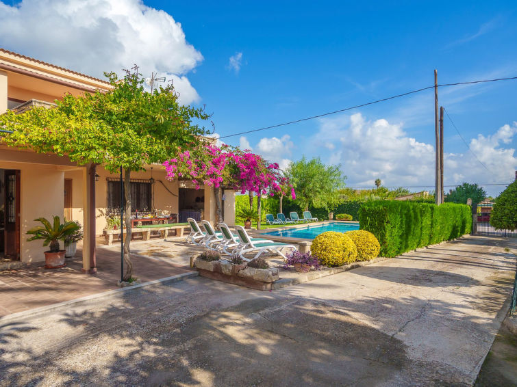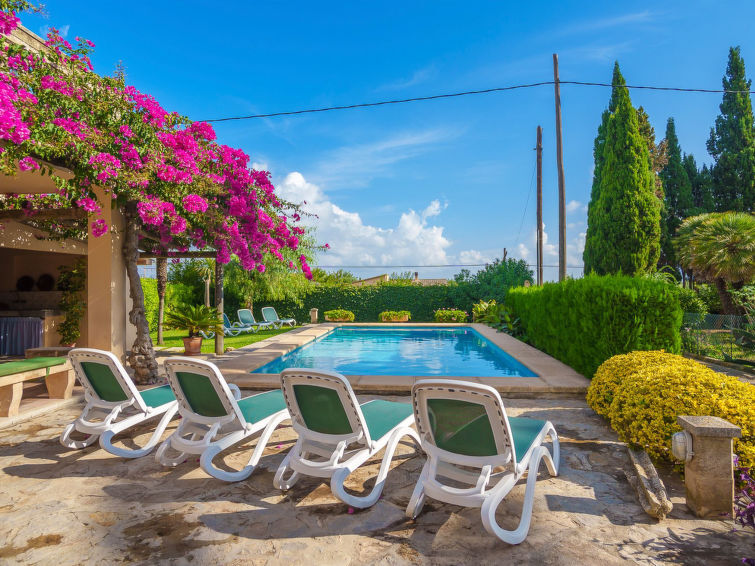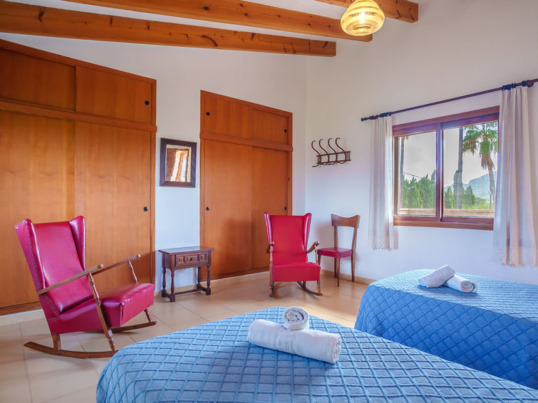 Alcudia 6 km van Pollensa: Groot, comfortabele eengezinswoning "La Truyola Pool Finca", van 2 verdiepingen, omgeven door bomen en velden. Buiten de plaats, 6 km van het centrum van Alcúdia, rustige ligging, 1 km van de bosrand, 6 km van zee, 6 km van het strand, te midden van groen. Voor alleengebruik: terrein 1.600 m2, tuin met gazon en bloemen, openluchtzwembad hoekig (4 x 9 m, 1 - 2 cm diepte, seizoensgebonden beschikbaarheid: 01.Apr. - 31.Okt.). Buitendouche, patio, barbecue, onderhoud zwembad door de eigenaar/tuinman. Parkeerplaats bij het huis op het terrein. Winkel 5 km, levensmiddelenwinkel 5 km, supermarkt 5 km, restaurant 6 km, bar 5 km, bakkerij 5 km, fietsverhuur 6 km, bushalte "Alcudia" 6 km, treinstation "Sa Pobla" 8 km, veerboot "Puerto de Alcúdia" 8 km, zandstrand "Playa de Alcúdia" 5 km, stenenstrand "Alcanada" 8 km, duikschool 10 km. Jachthaven 8 km, jachthaven 8 km, golfterrein (18 holes) 5 km, surfschool 6 km, zeilschool 6 km, tennis 8 km, manege 7 km, sportcentrum 6 km, wandelroutes 5 km vanaf het huis, fietspad 1 km. Attracties in de buurt: Playa de Formentor 18 km, Faro de Formentor 27 km, Monasterio de Lluc 32 km, Cuevas de Campanet 10 km. Wandelgebied La Victoria 14 km, Coll Baix 12 km. Auto noodzakelijk. Geschikt voor families, geschikt voor senioren. De eigenaar accepteert geen groepen. De eigenaar accepteert geen jeugdgroepen. Vliegveld 60 km van het huis.