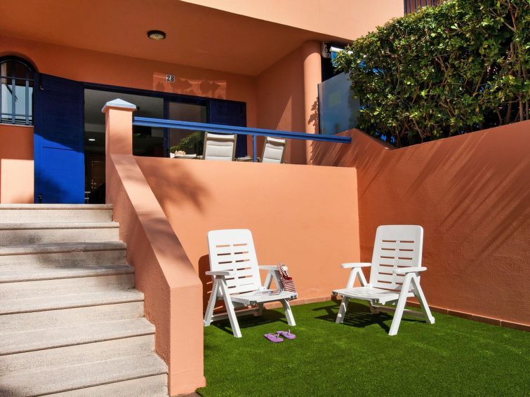 "Bungalow in Meloneras HH28", appartement 3-kamers 90 m2 op 2 verdiepingen. Eenvoudig en comfortabel ingericht: woonkamer met Digitale TV, DVD en air-conditioning. Uitgang naar het terras. Open keuken (oven, 2 keramische glas kookplaten, broodrooster, waterkoker, magnetron, diepvriezer, elektrische koffiemachine). Douche/WC. Bovenverdieping: 1 kamer met 1 2-pers bed en air-conditioning. Uitgang naar het balkon. 1 kamer met 2 bedden en air-conditioning. Balkon, terras. Terrasmeubelen, balkonmeubilair, barbecue. Ter beschikking: wasmachine, kluis, strijkijzer, kinderstoel, kinderbed tot 2 jaar, haardroger. Internet (WiFi, gratis). Niet rokers woning. 2021-T1107 // Reg. Nr.: ESFCTU0000350120003599780000000000000VV-35-1-00154831