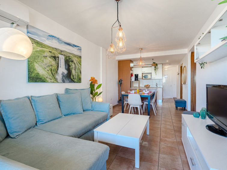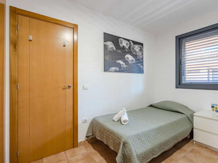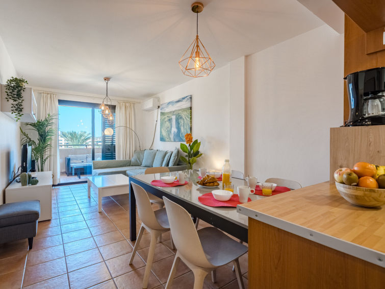 "Vista oceano y piscinas Paraiso", appartement 3-kamers 65 m2 op de 3e verdieping. Het objekt is geschikt voor 3 volwassenen + 2 kinderen. Licht, doelmatig en comfortabel ingericht: woon-/eetkamer met TV, internationale TV-zenders, Flatscreen TV en air-conditioning. Uitgang naar het terras. 1 kamer met 2 bedden (90 cm, lengte 190 cm). 1 kamer met 1 bed (90 cm, lengte 190 cm), 1 x 2 stapelbedden (90 cm, lengte 190 cm). Open keuken (oven, 4 keramische glas kookplaten, broodrooster, waterkoker, magnetron, diepvriezer, elektrische koffiemachine). Bad/bidet/WC, douche/WC. Boiler (50 liter). Geen verwarmingsmogelijkheid. Groot terras 15 m2. Terrasmeubelen, zitgelegenheid. Uitzicht op zee, de bergen, het zwembad en de plaats. Ter beschikking: wasmachine, strijkijzer, haardroger. Internet (WiFi, gratis). Parkeerplaats nr. 65 Portal 1-3 (overdekt, omheind, 1 Auto). Geschikt voor families. Niet rokers woning. Rookmelders. VV-38-4-0098627